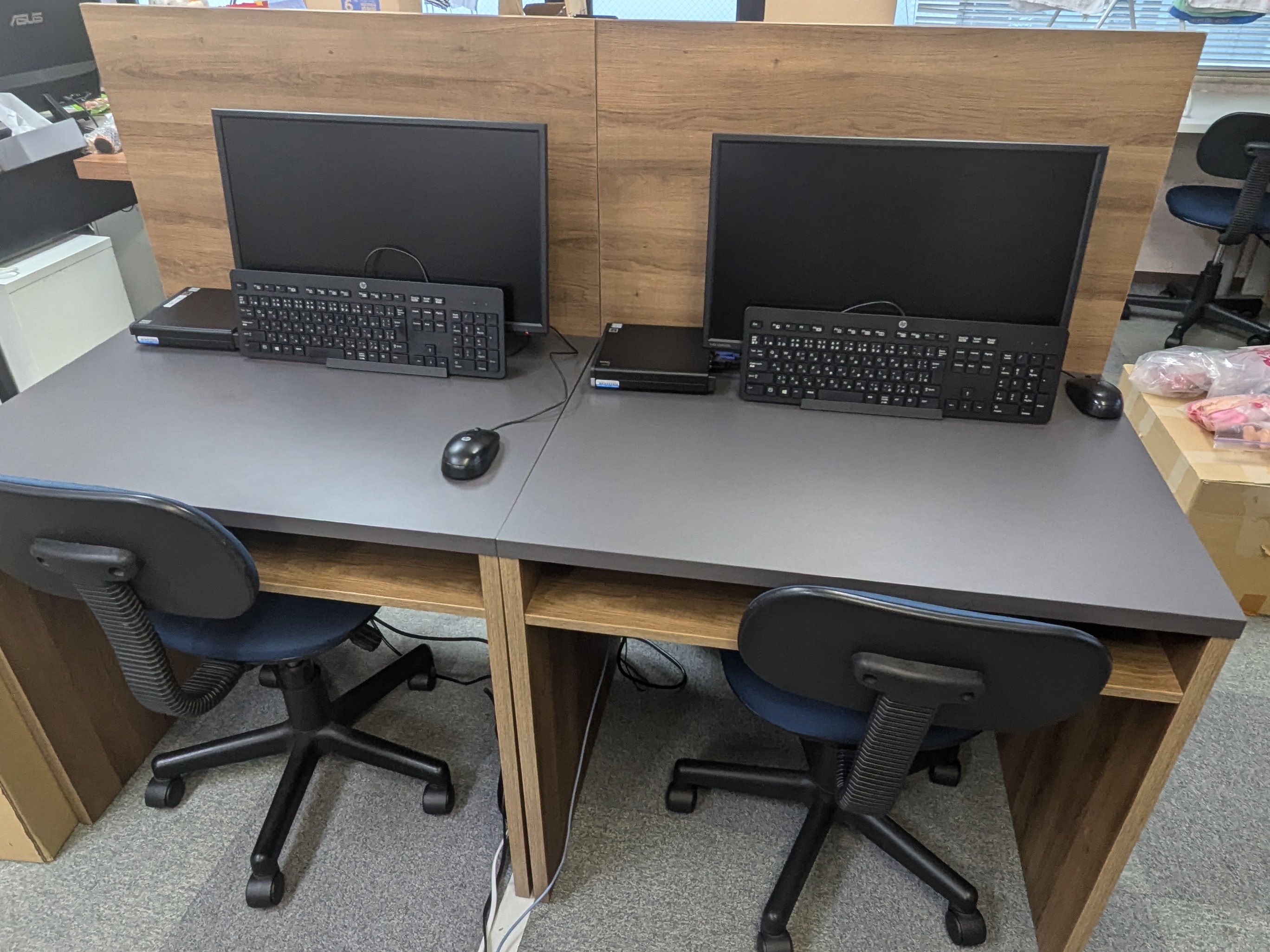 個人スペースに配慮した机と1人1台のパソコンを配備